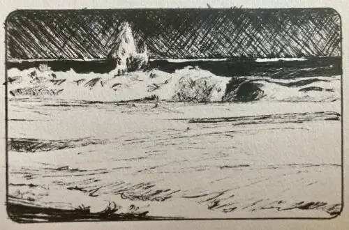 Wasserfall Saarburg, Bleistift, ca. 3 x 5cm März 2022